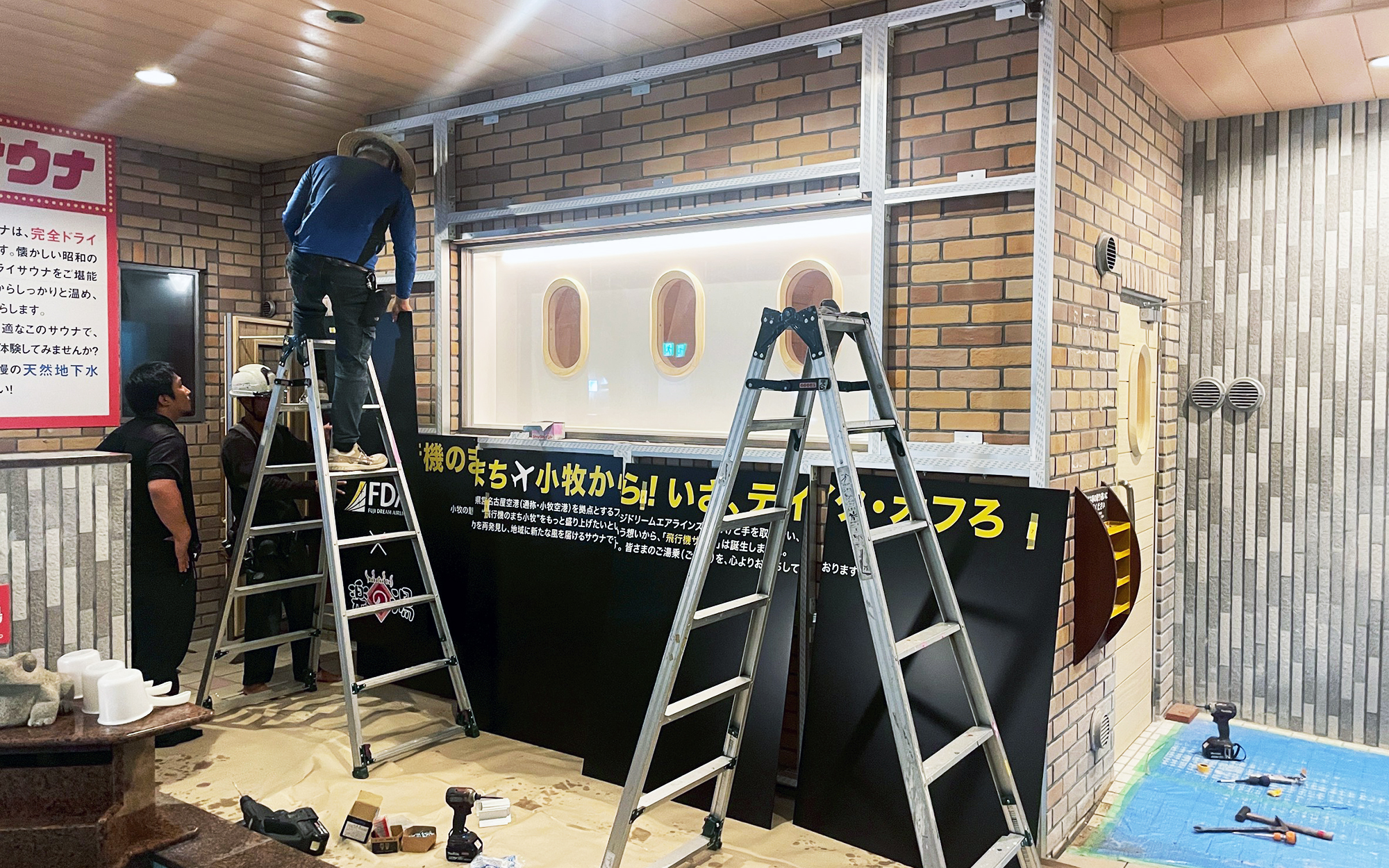 こまき楽の湯様「飛行機サウナ」装飾