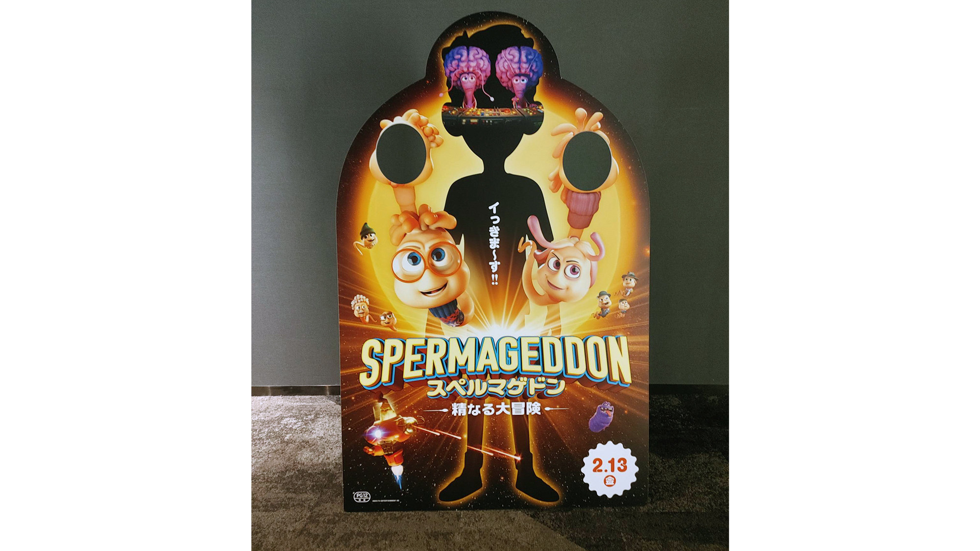 2026年2月13日公開、大胆なコンセプトで世界中で話題を呼んだノルウェーアニメ『スペルマゲドン 精なる大冒険』の、劇場用スタンディを制作いたしました。